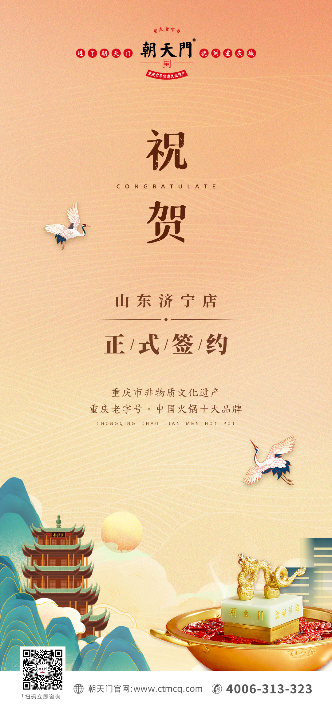 熱烈祝賀山東濟(jì)寧宮總與朝天門火鍋達(dá)成合作協(xié)議!