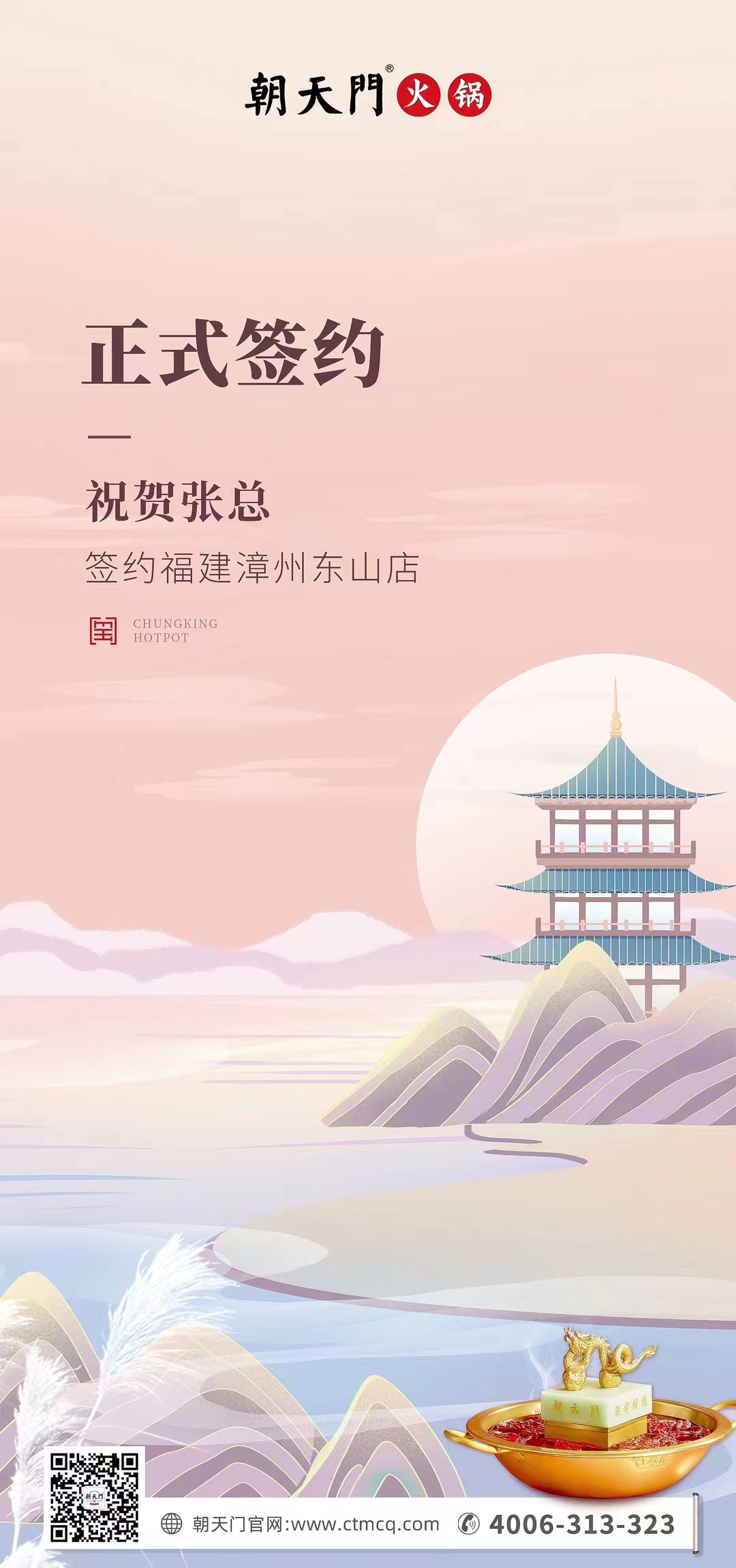 喜訊:福建漳州東山店張總與朝天門火鍋達(dá)成合作協(xié)議!