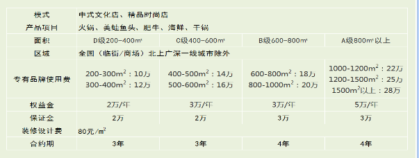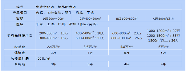 特色火鍋加盟單店費(fèi)用標(biāo)準(zhǔn)二: